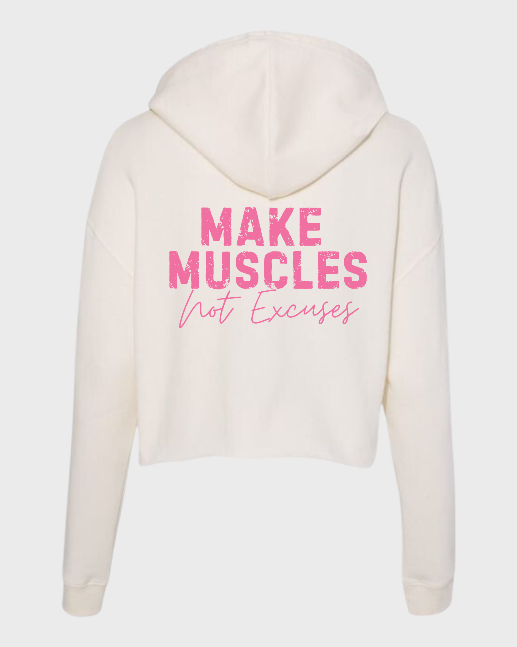 KK Make Muscles Not Excuses Cropped Hoodie Ivory/Pink