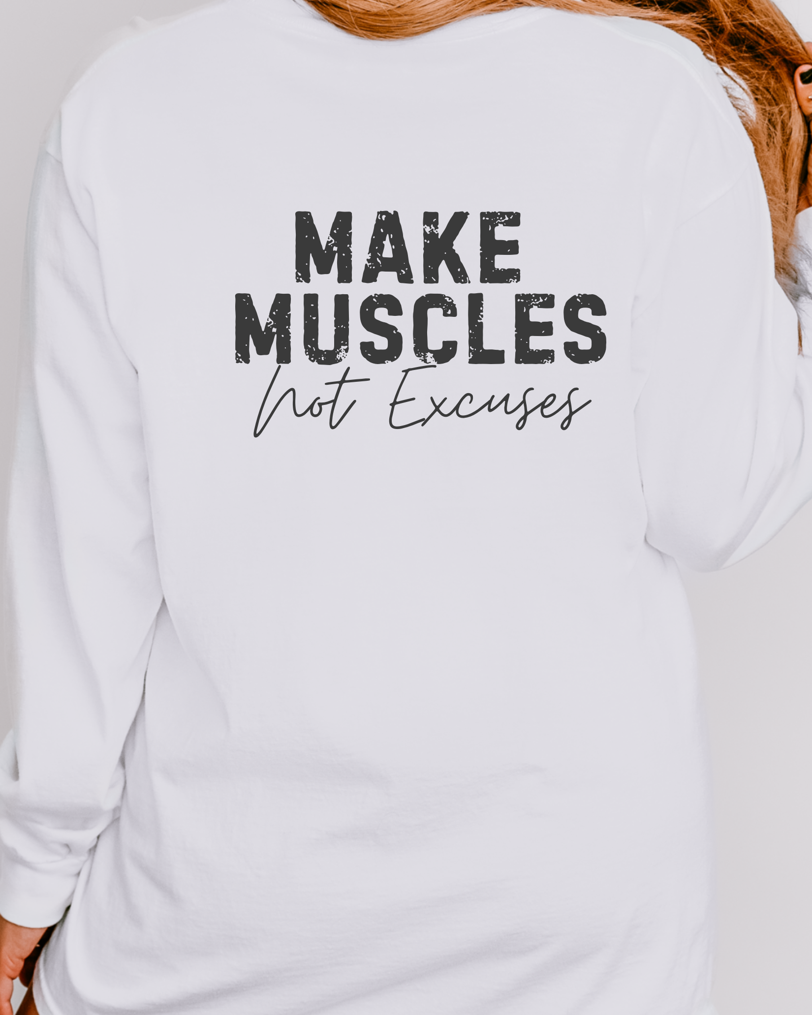 KK Make Muscles Not Excuses Long Sleeve Tee White