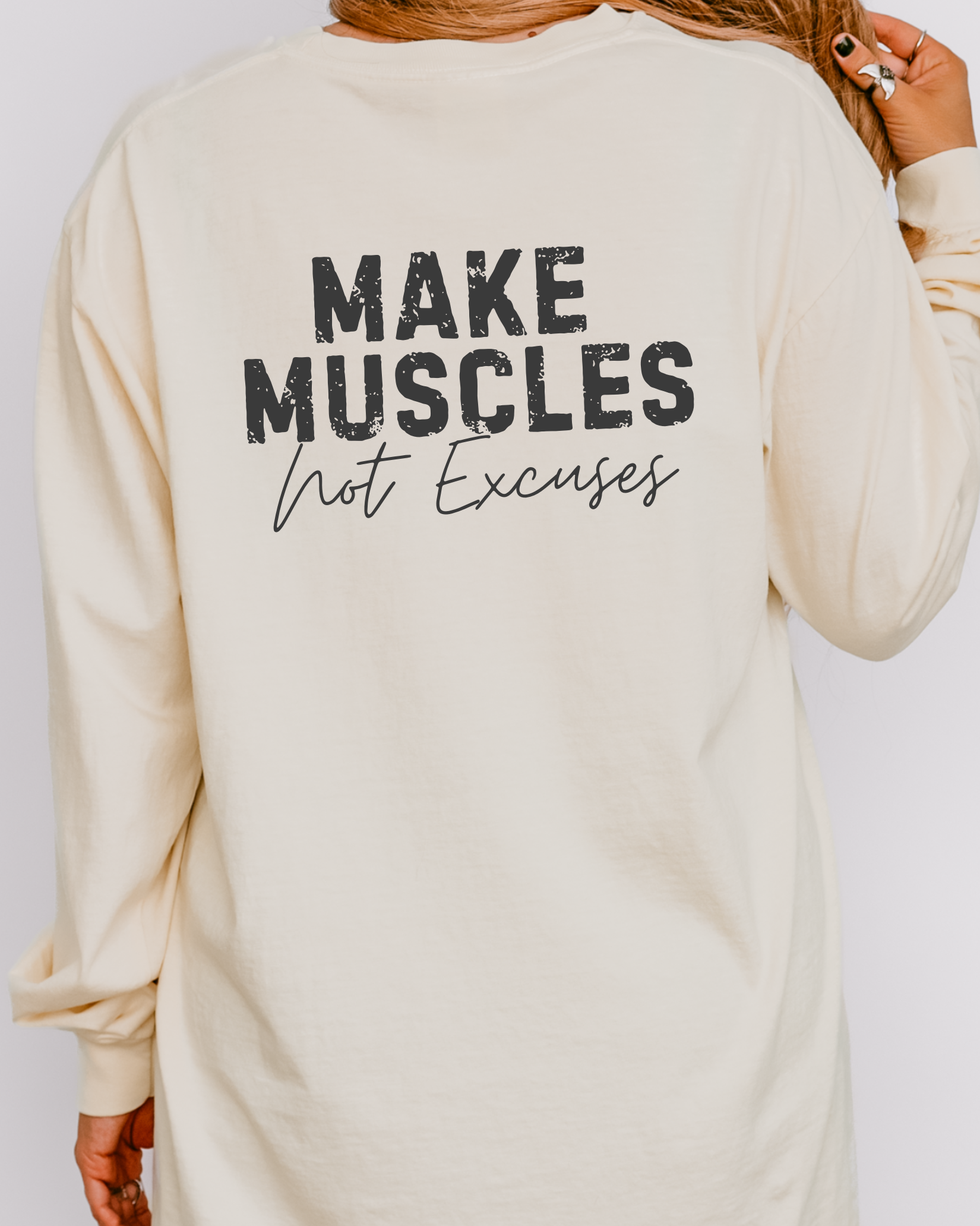 KK Make Muscles Not Excuses Long Sleeve Tee Ivory