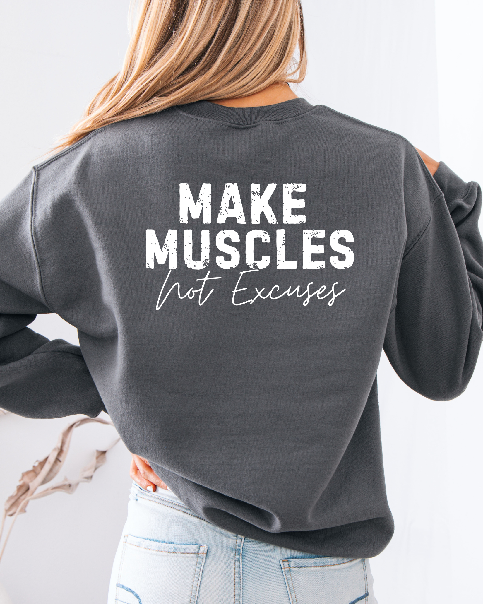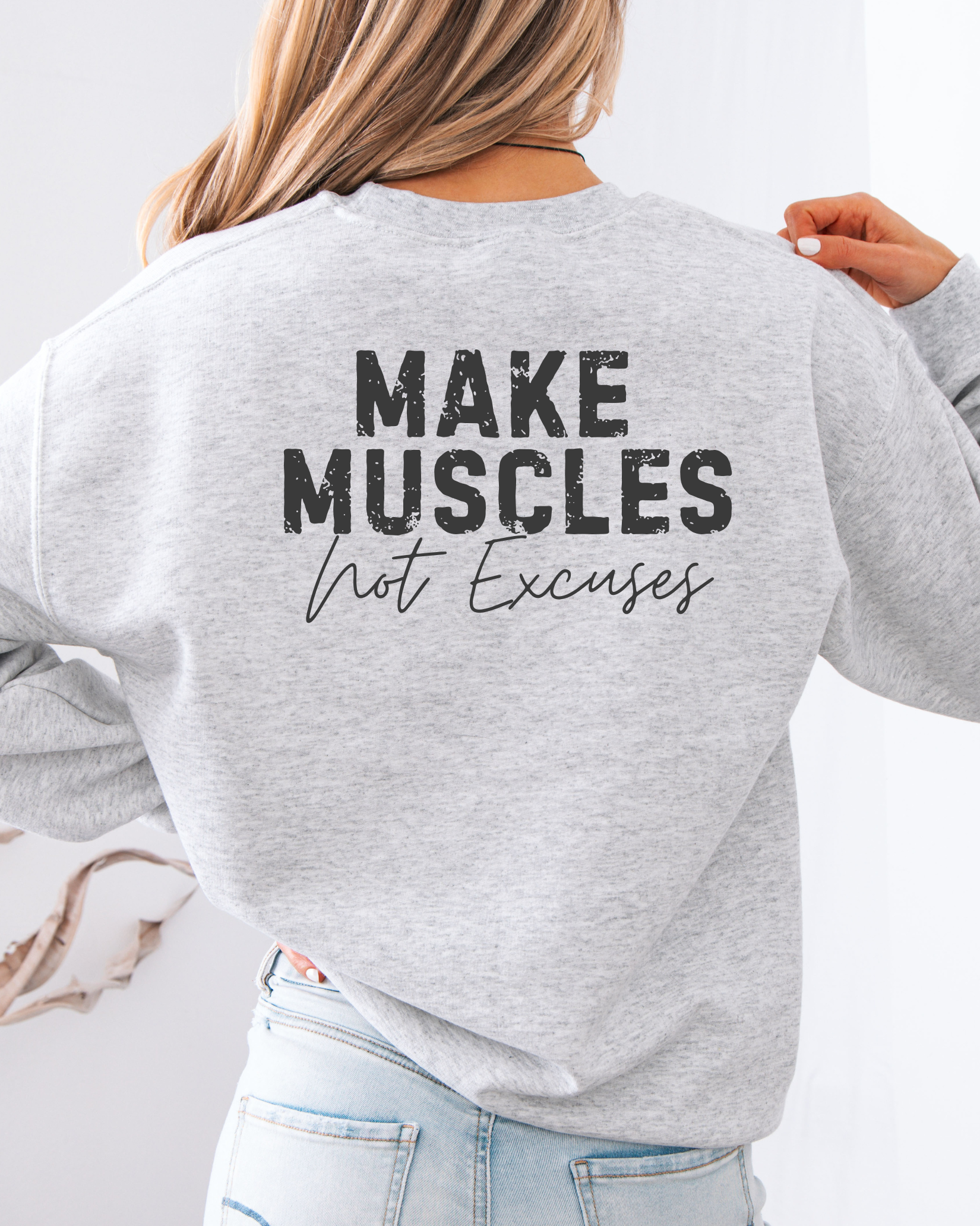 KK Make Muscles Not Excuses Crewneck Sweatshirt Ash