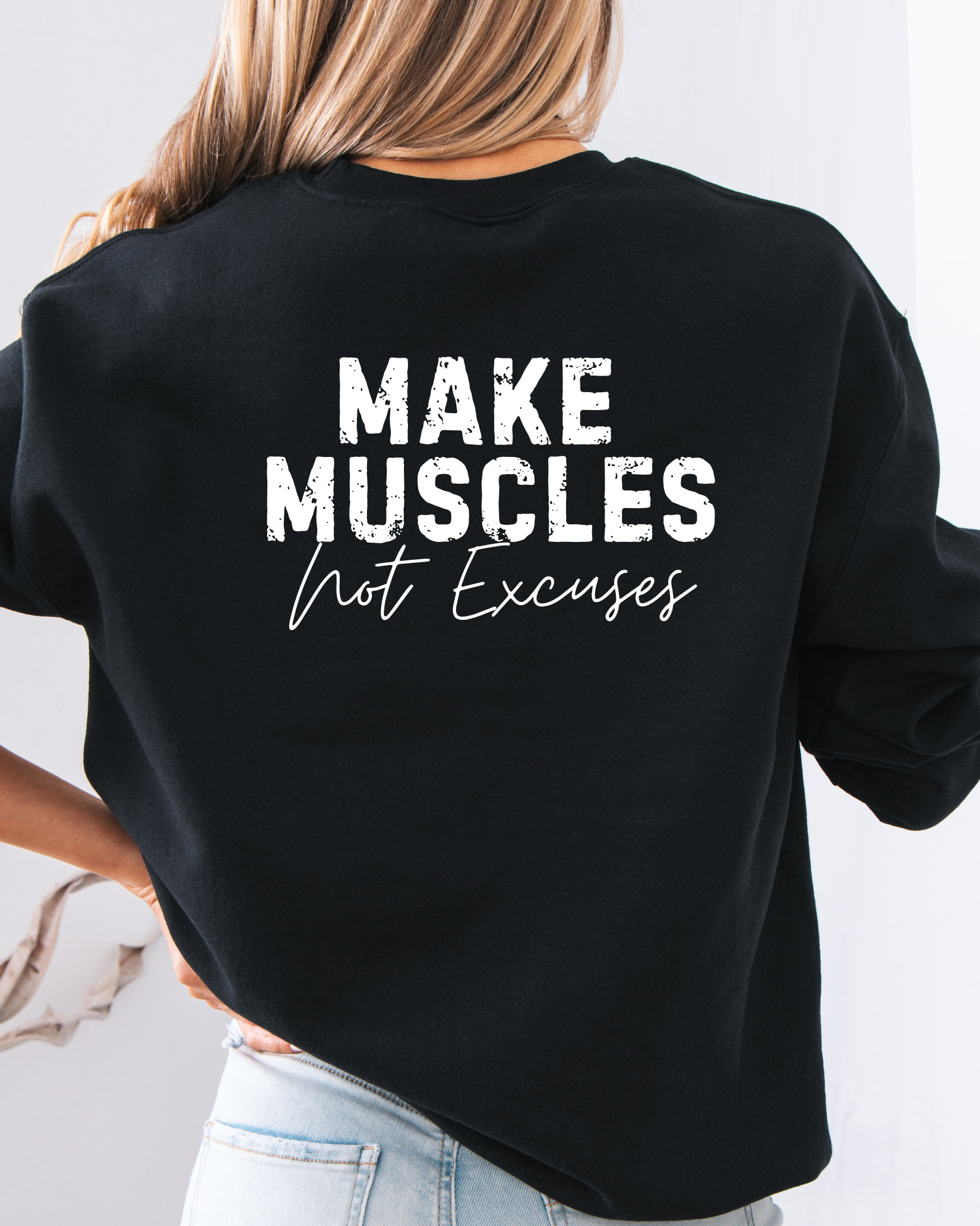 KK Make Muscles Not Excuses Crewneck Sweatshirt Black