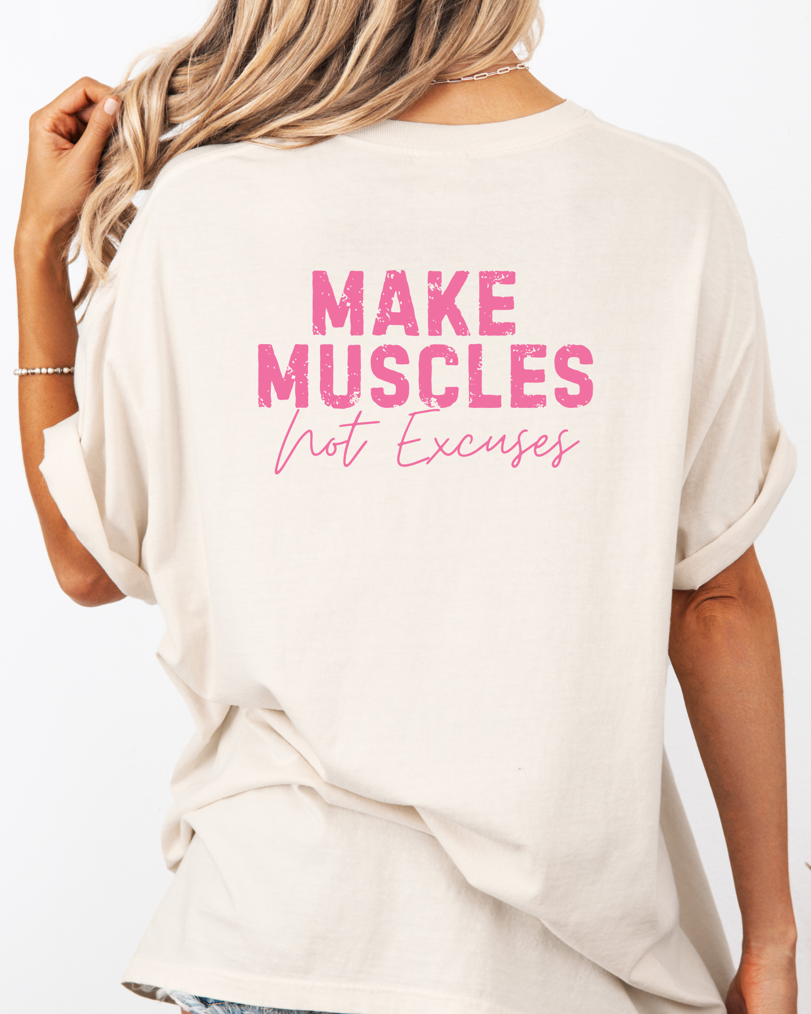 KK Make Muscles Not Excuses Tee Ivory/Pink