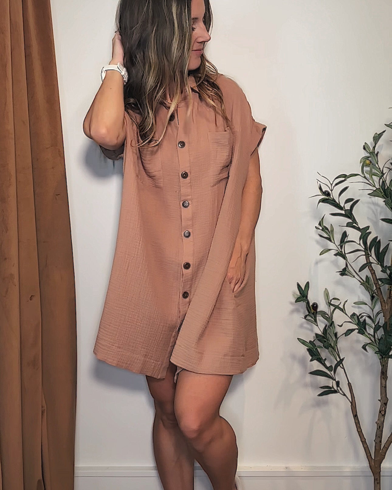 Cotton Gauze Short Sleeve Mini Dress