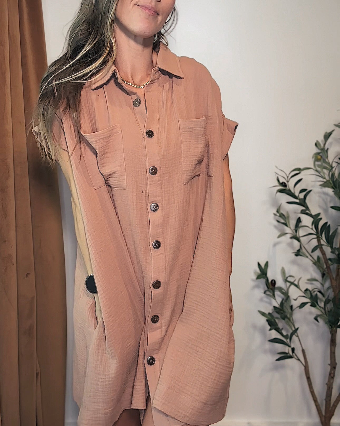 Flowy Cotton Gauze Mini Dress