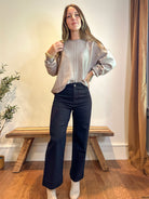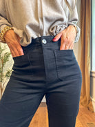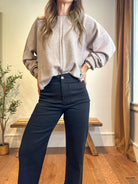 Effortless style meets classic tailoring with the Hearthside High-Rise Wide-Leg Pants. Crafted from a soft cotton-blend twill knit, these pants feature a flattering high-rise silhouette, front patch pockets, back pockets, and a zip fly with button closure. Belt loops allow for added styling versatility, while the full-length wide-leg cut creates a polished, elongated look. Perfect for dressing up with a blouse or keeping it casual with a tee, these pants are a versatile wardrobe essential.