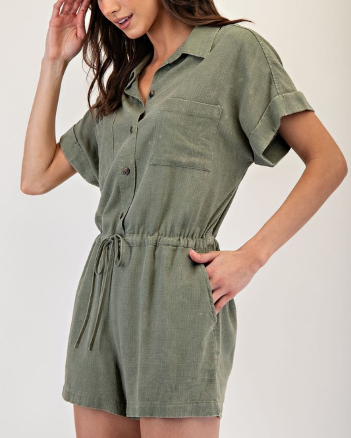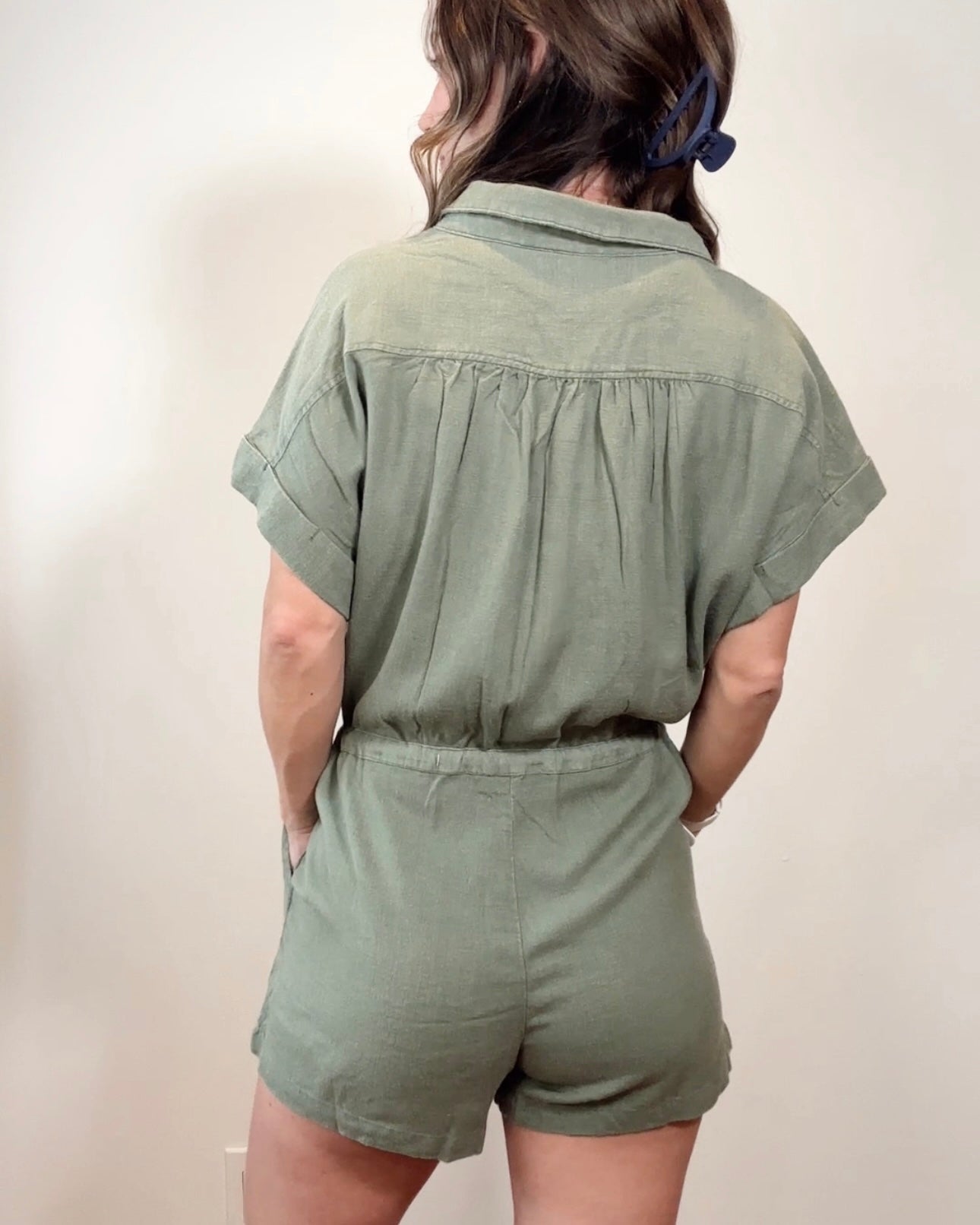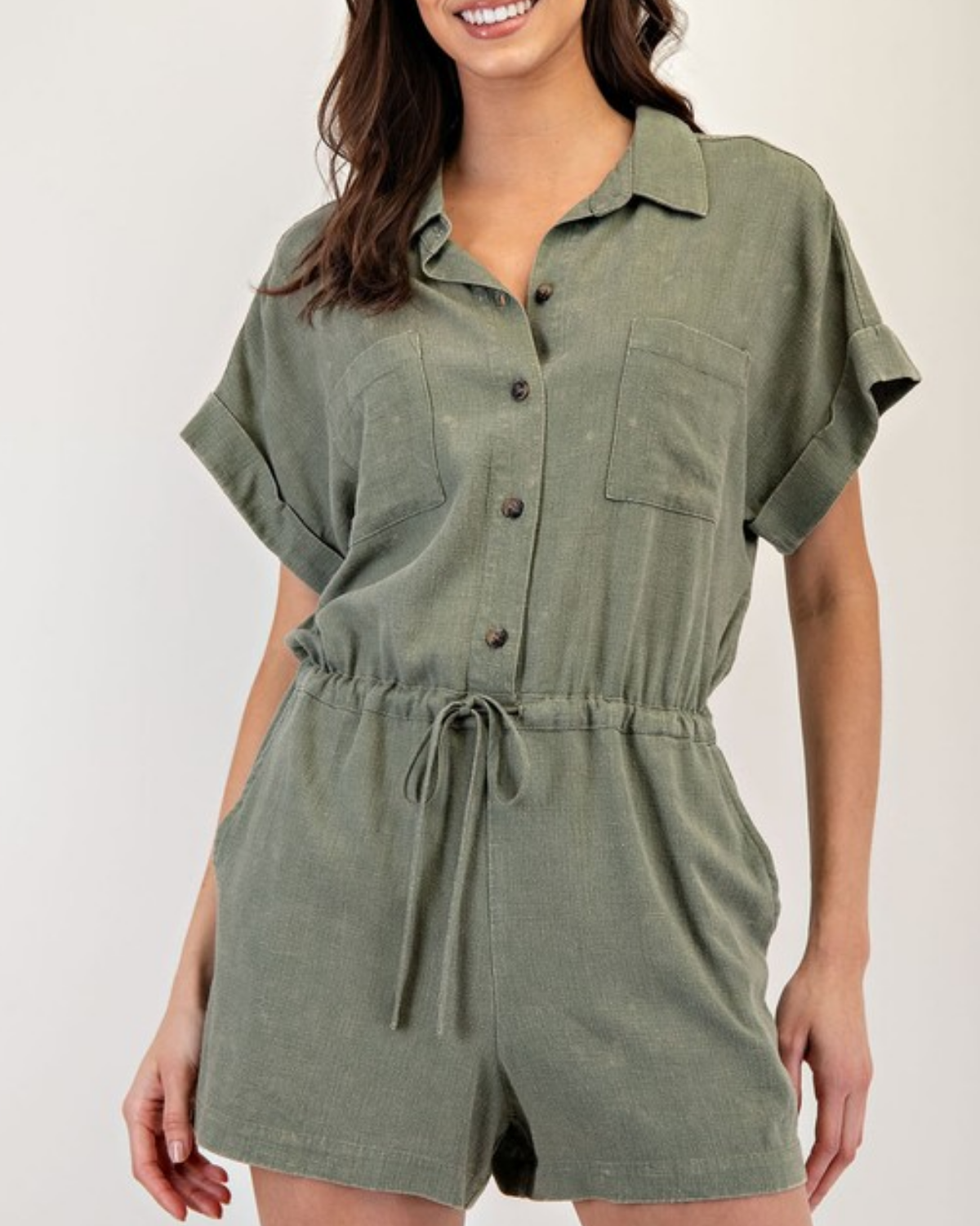 Olive Button Down Romper