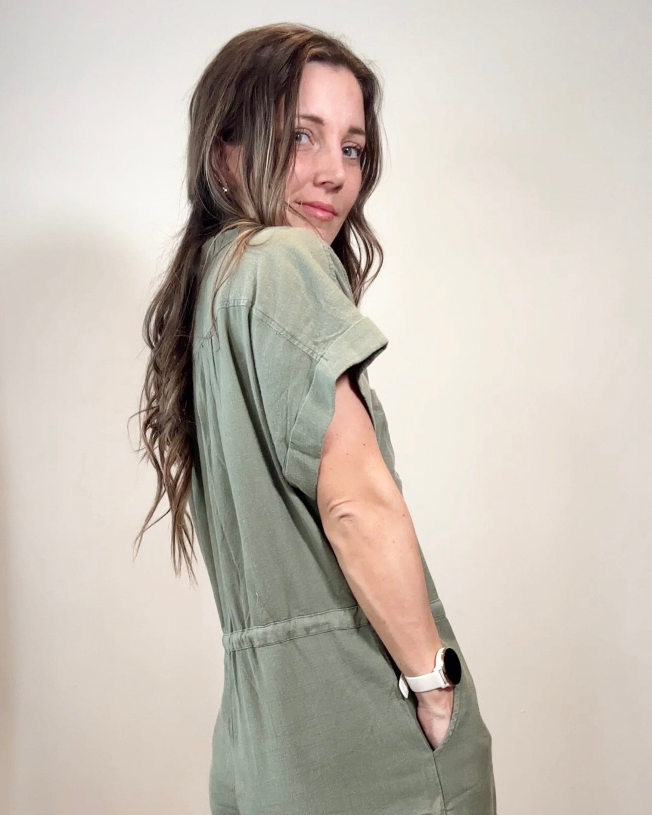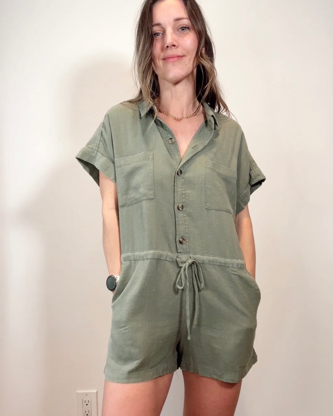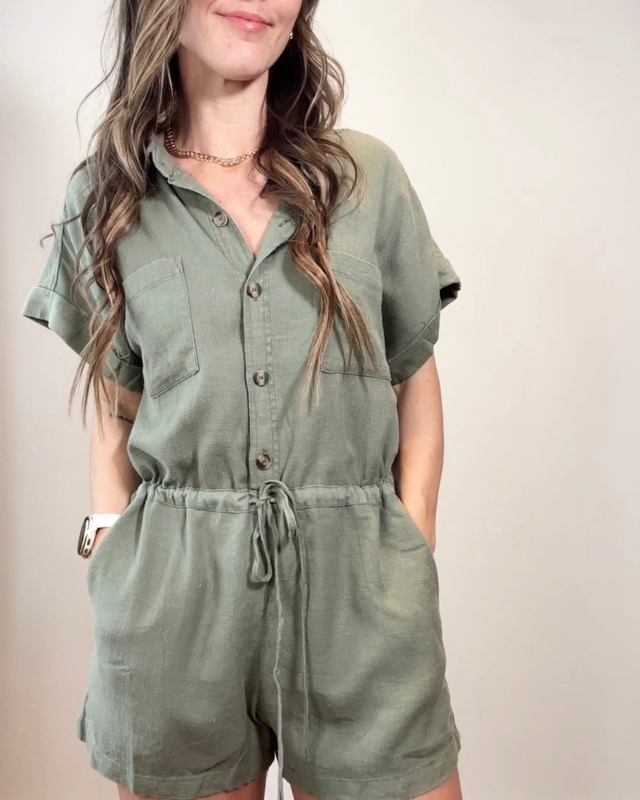 Olive Button Down Romper