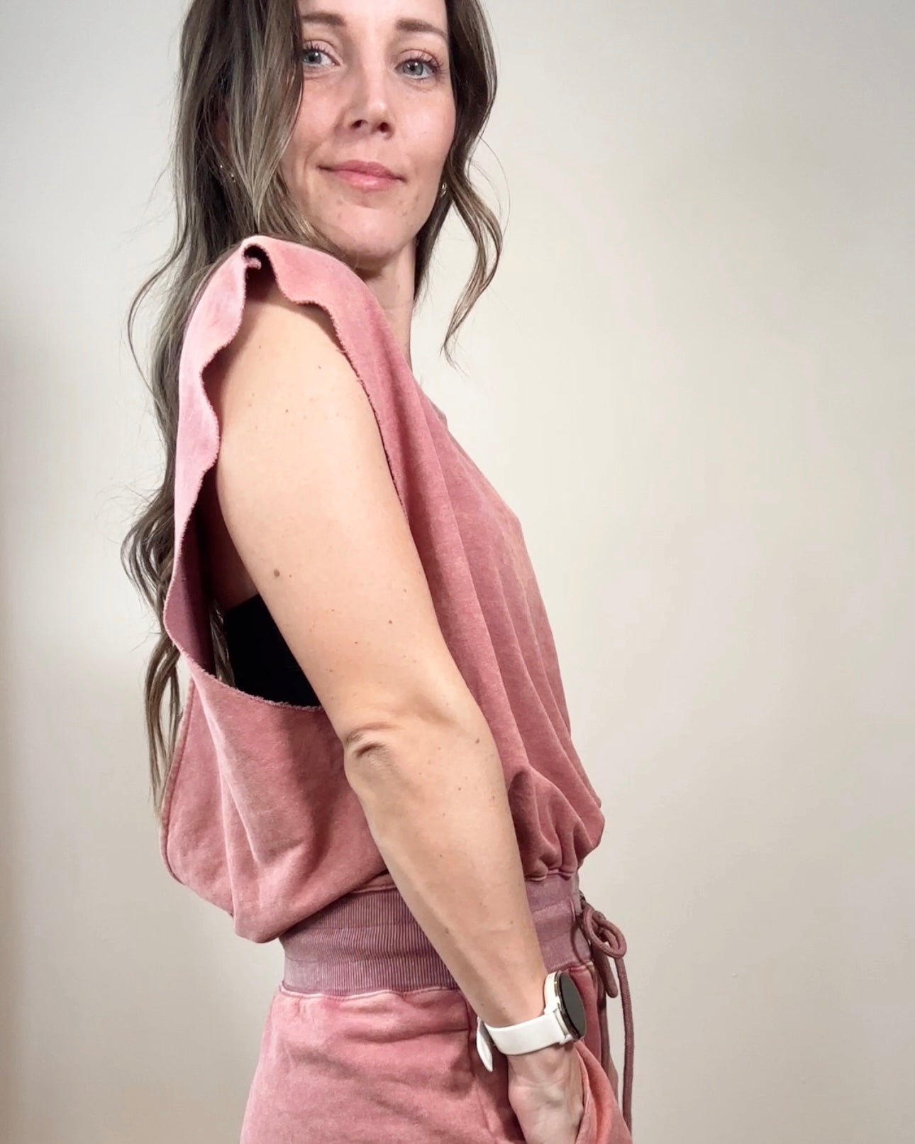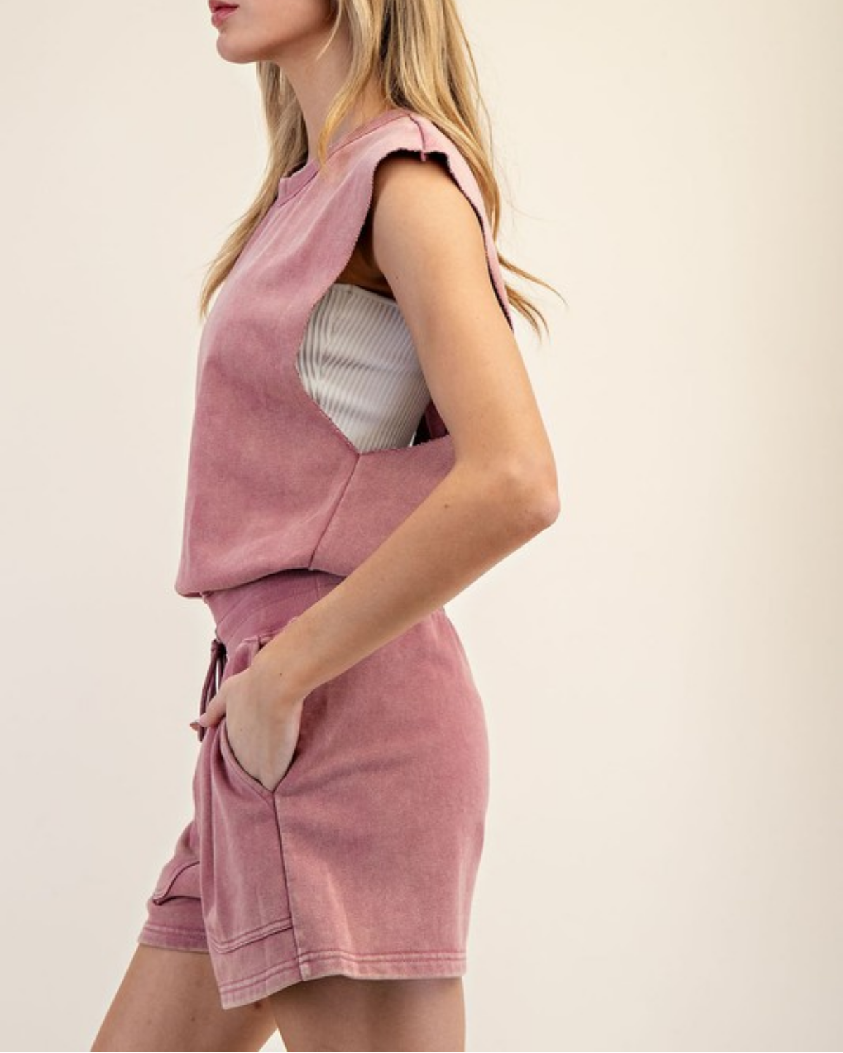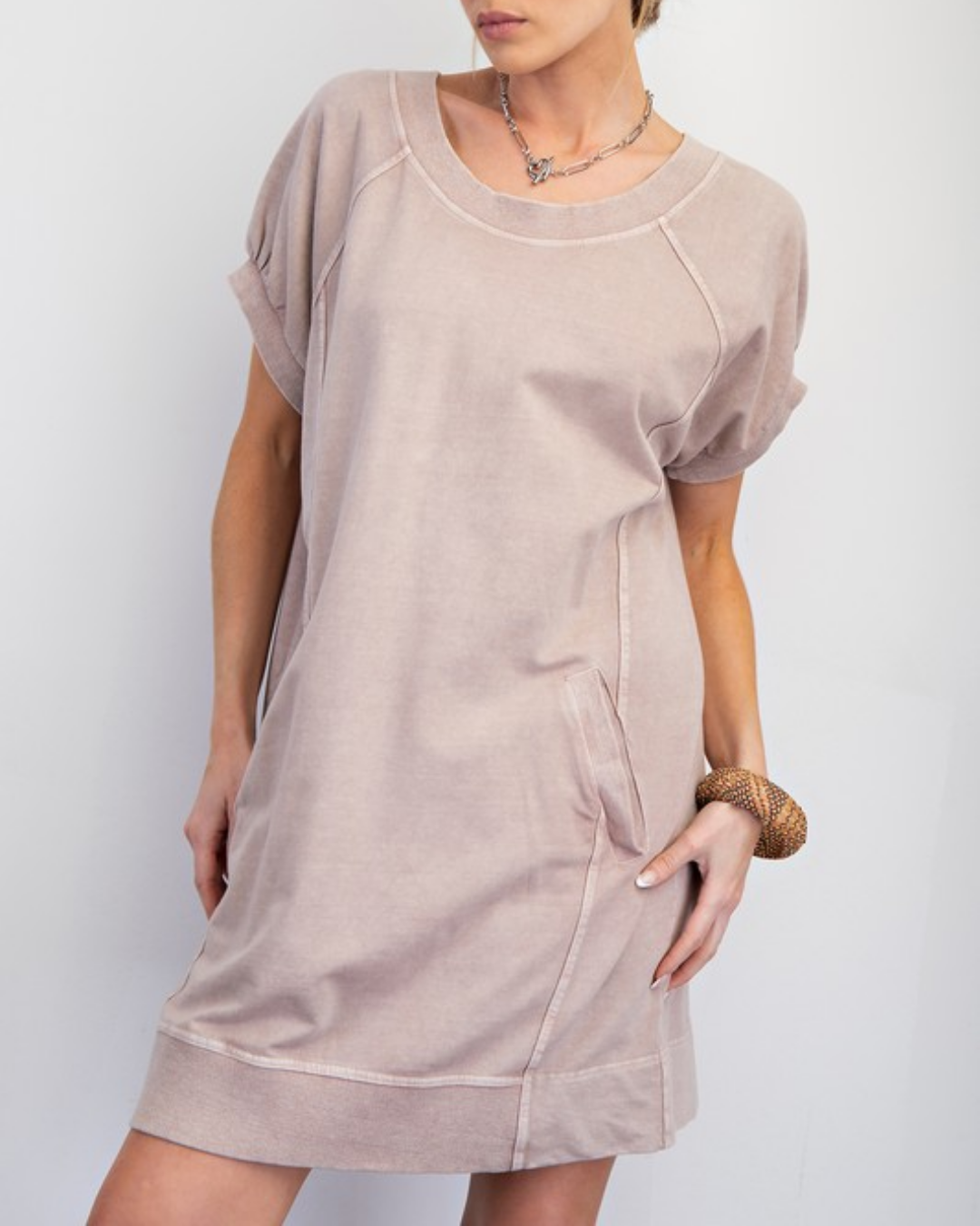 Mineral Washed Terry Knit Dress Dusty Mauve