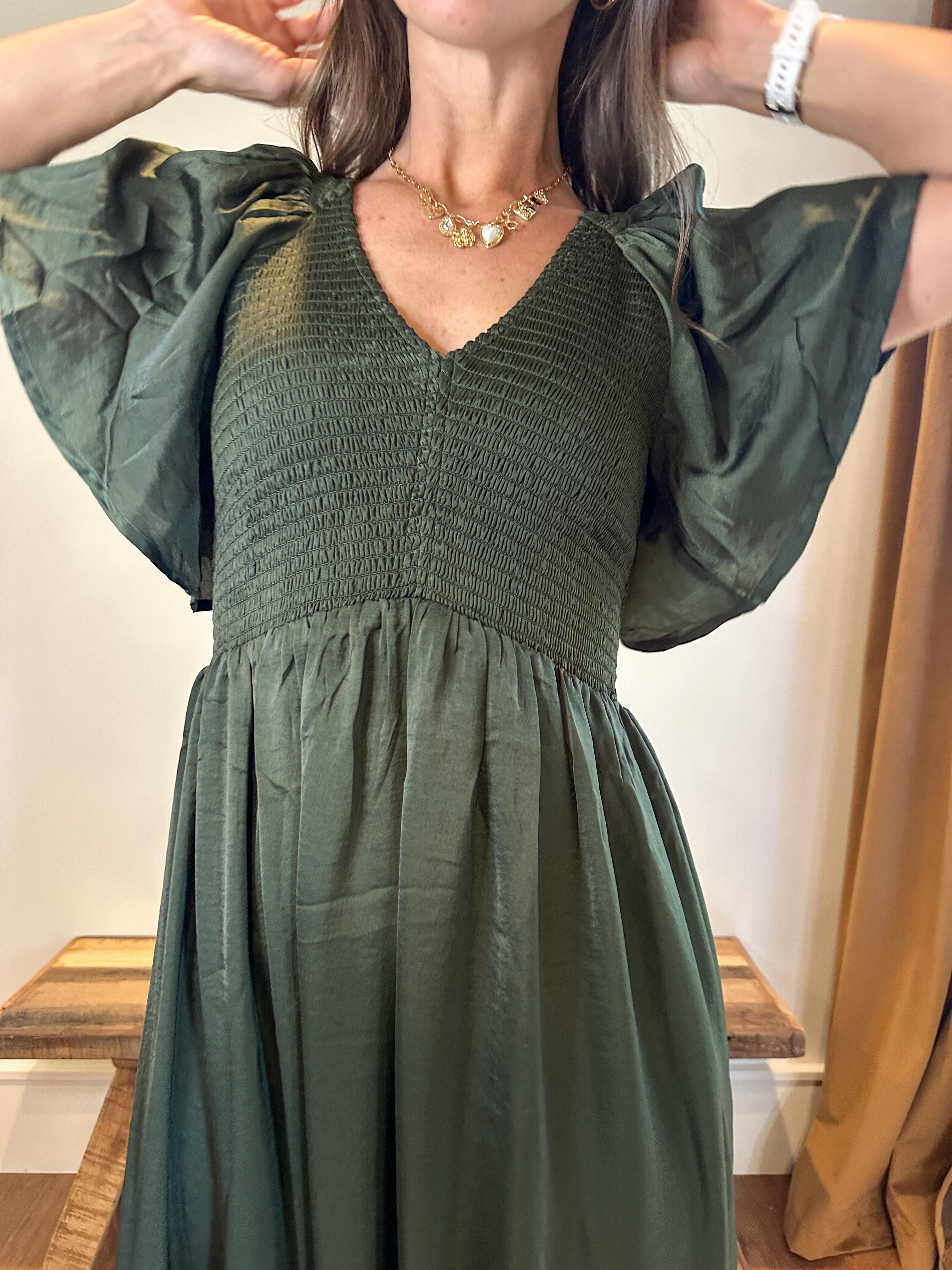 Olive Washed Satin Midi Dress