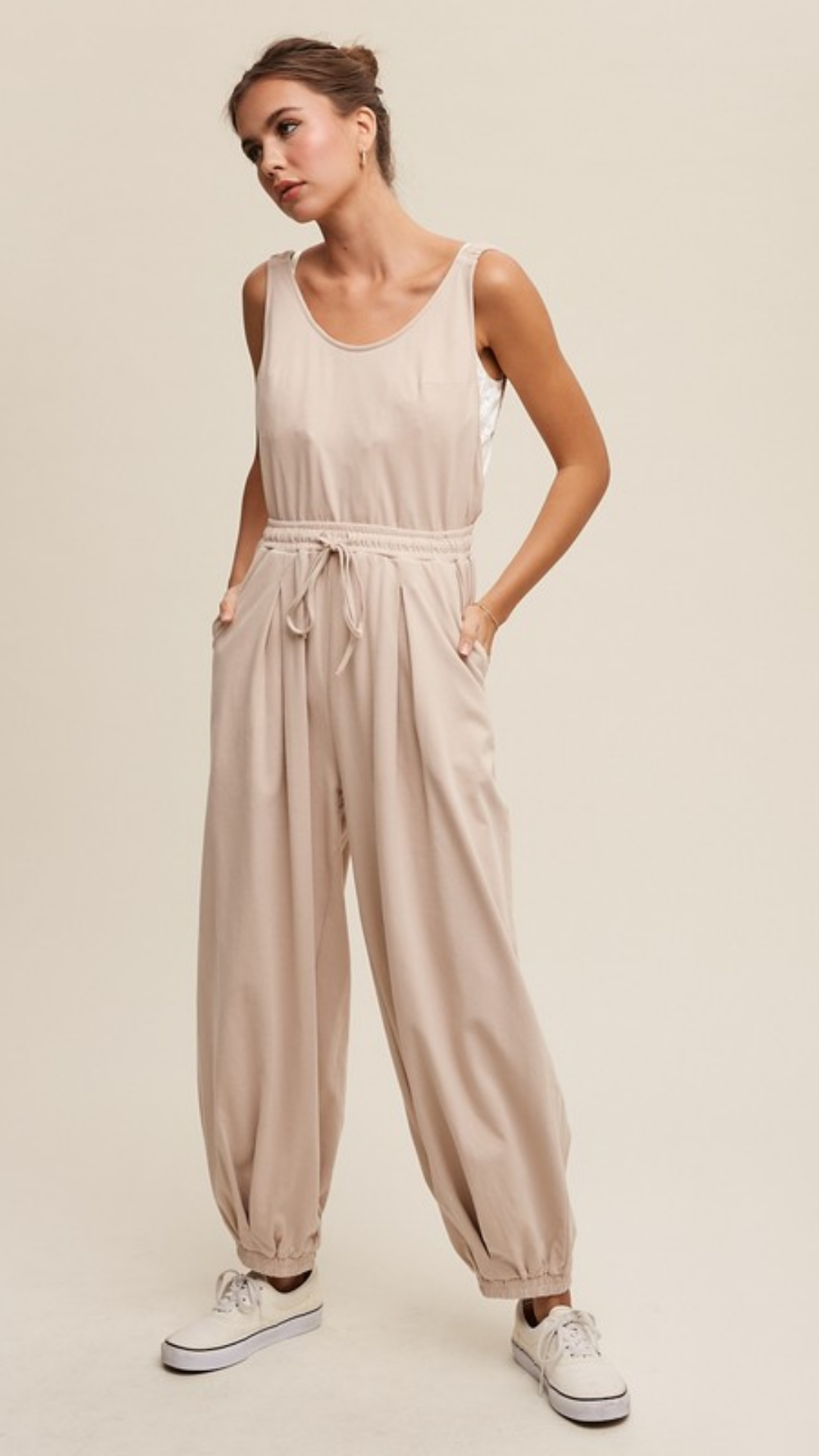 Oatmeal Open Back Jumpsuit