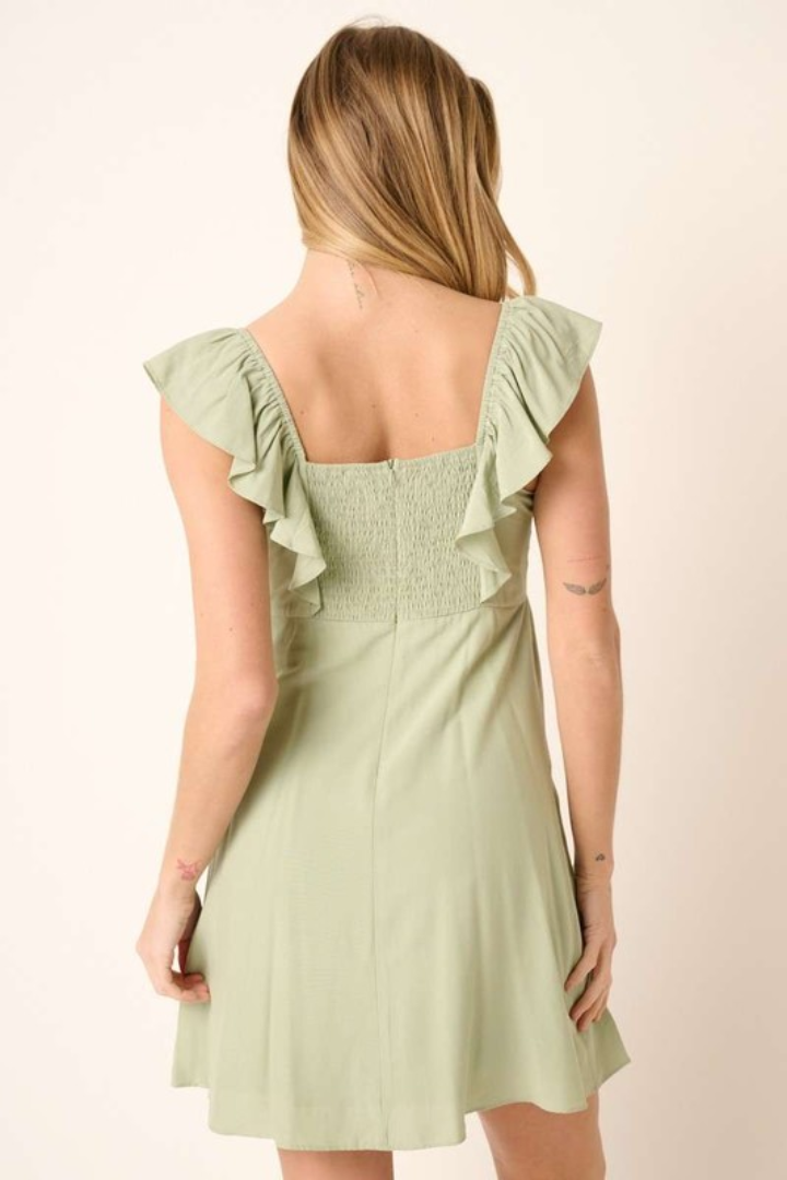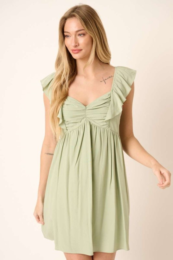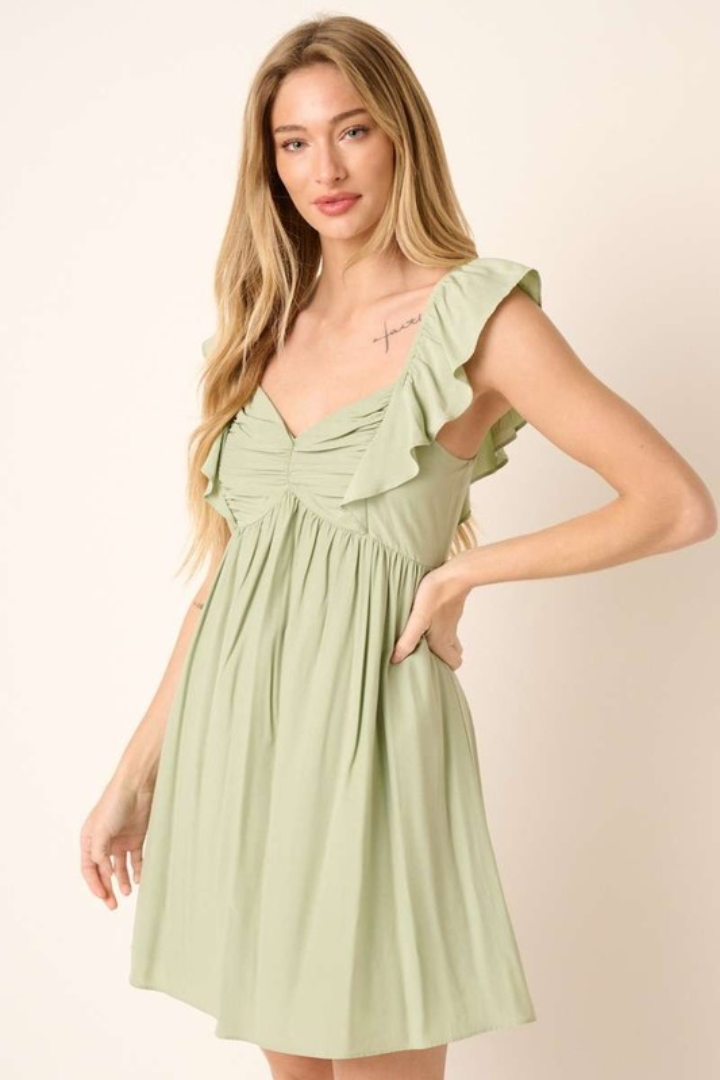 Sage Ruffle Mini Dress