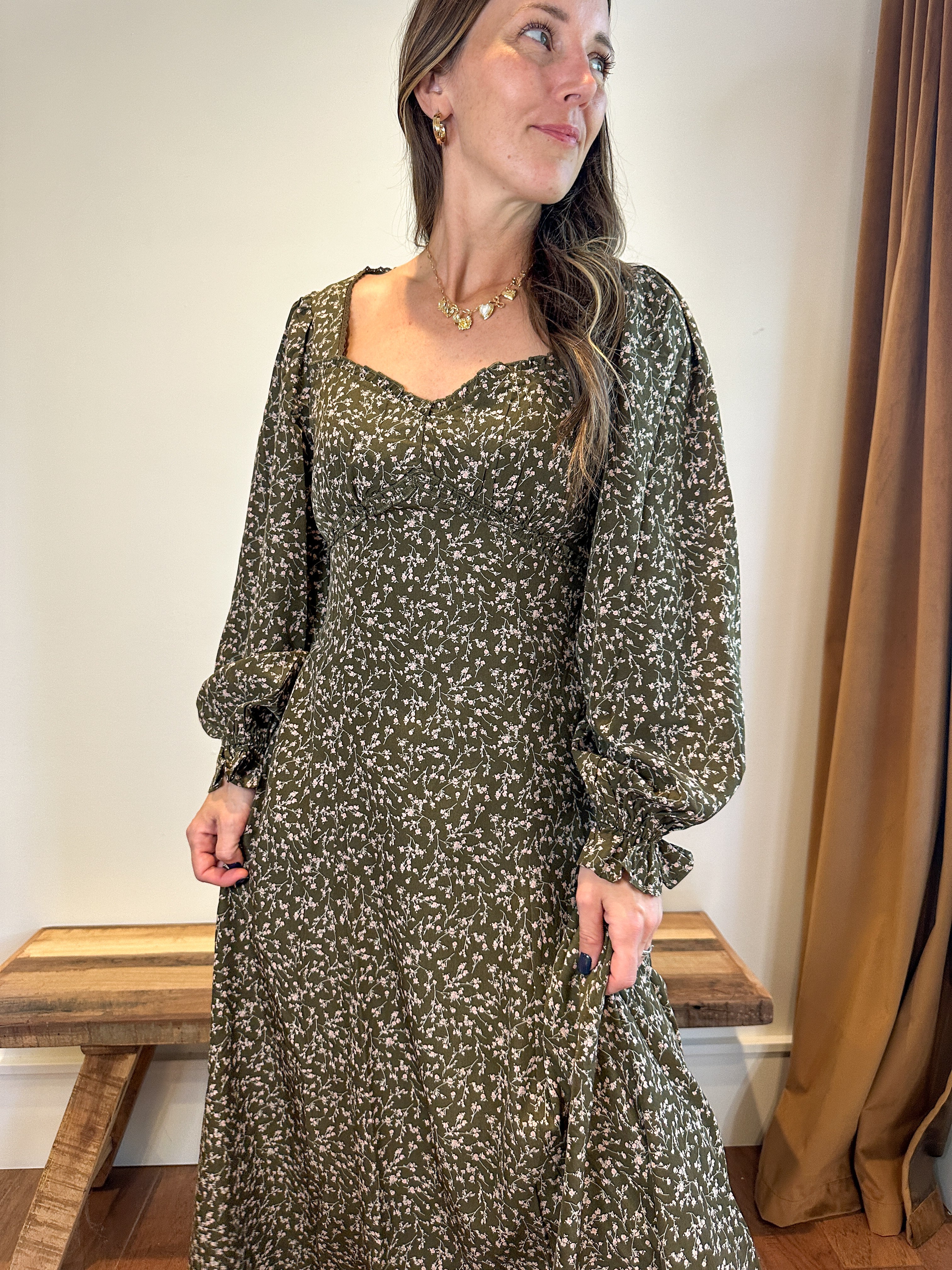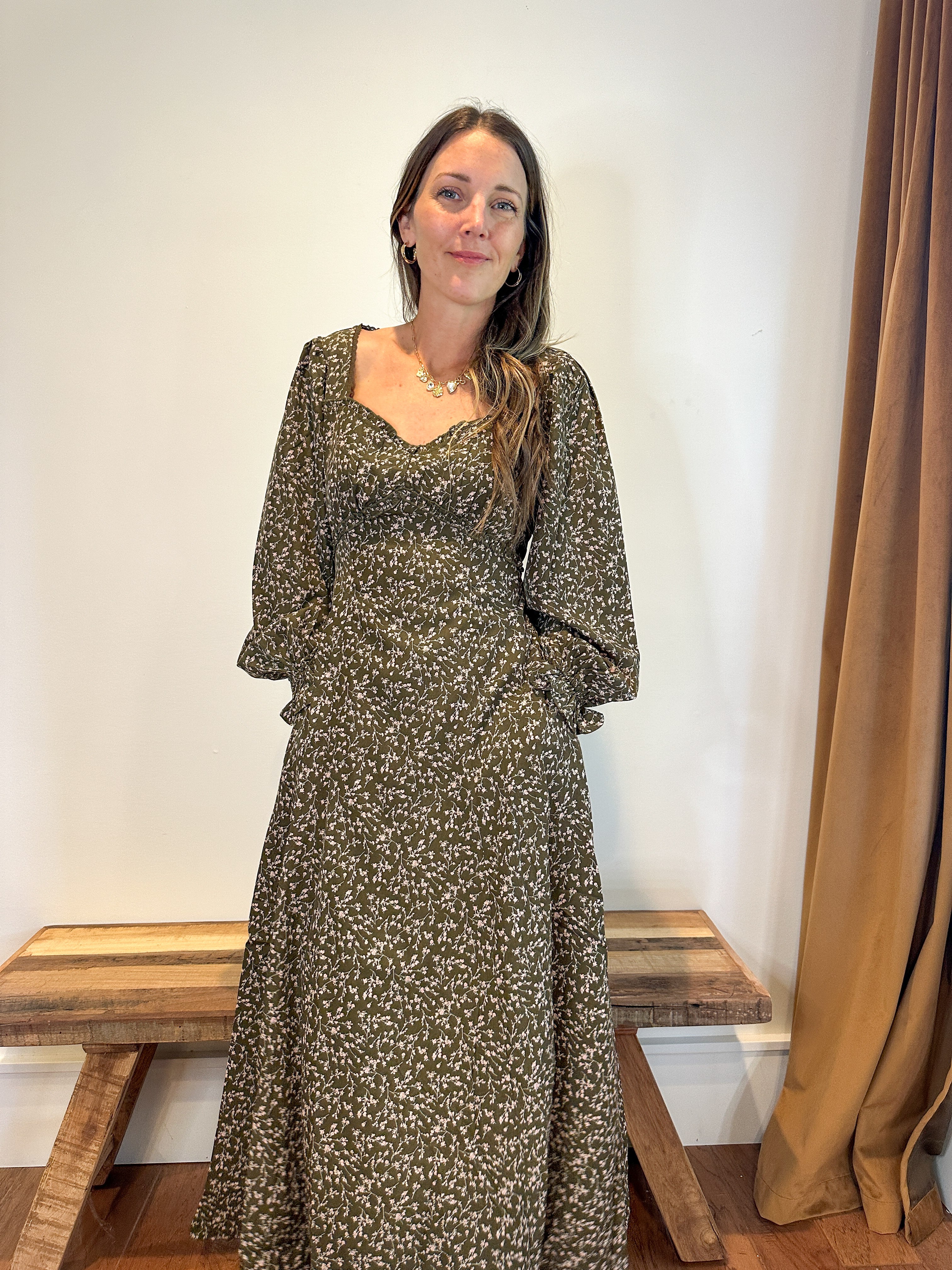 Romantic and refined, the Sweetheart Floral Maxi Dress brings effortless elegance to any occasion. The classic sweetheart neckline adds a soft, feminine touch, while long, flowy sleeves create a graceful silhouette that feels both timeless and modern. A fitted bodice enhances your shape, leading into a sweeping floral maxi skirt that moves beautifully with every step. Perfect for weddings, brunch dates, or elevated everyday style, this dress blends charm, comfort, and sophistication.