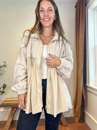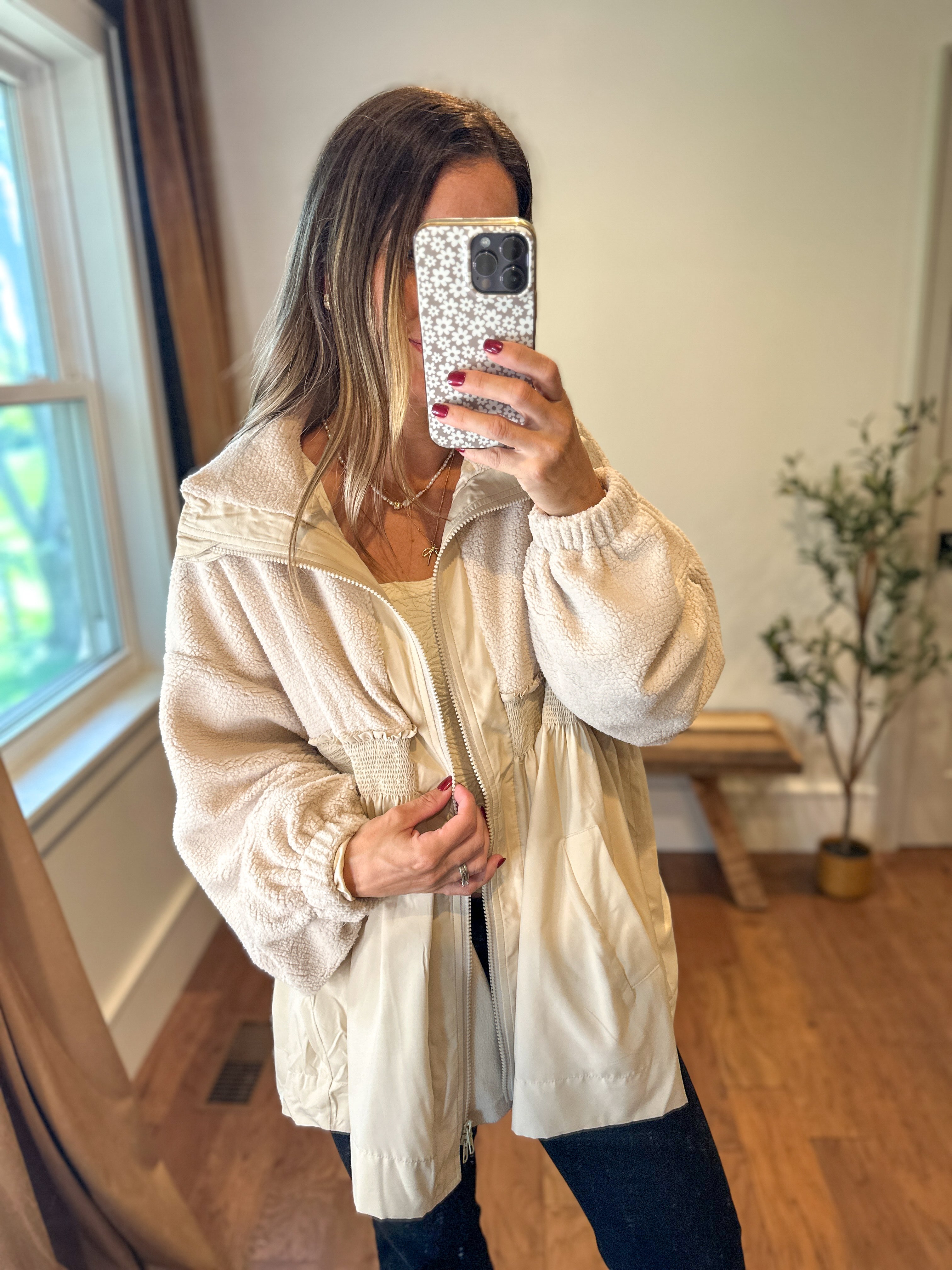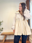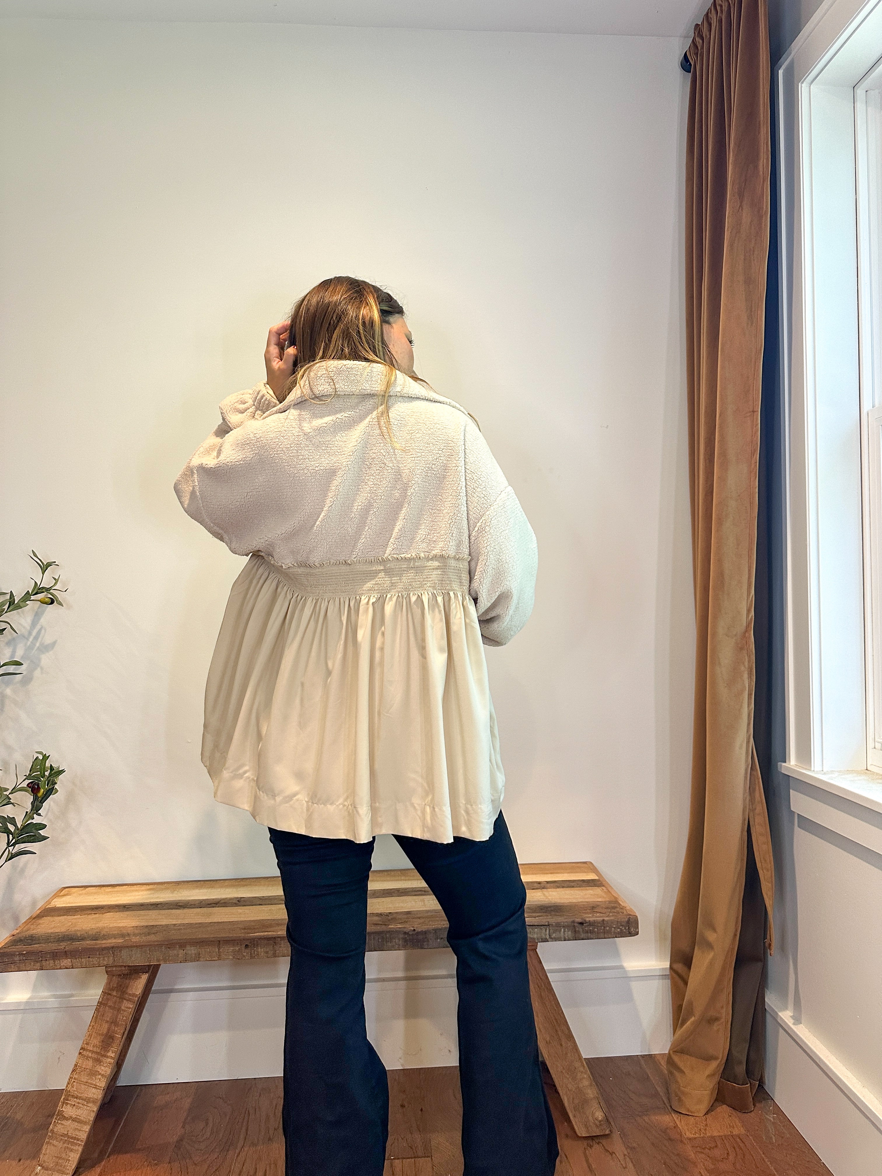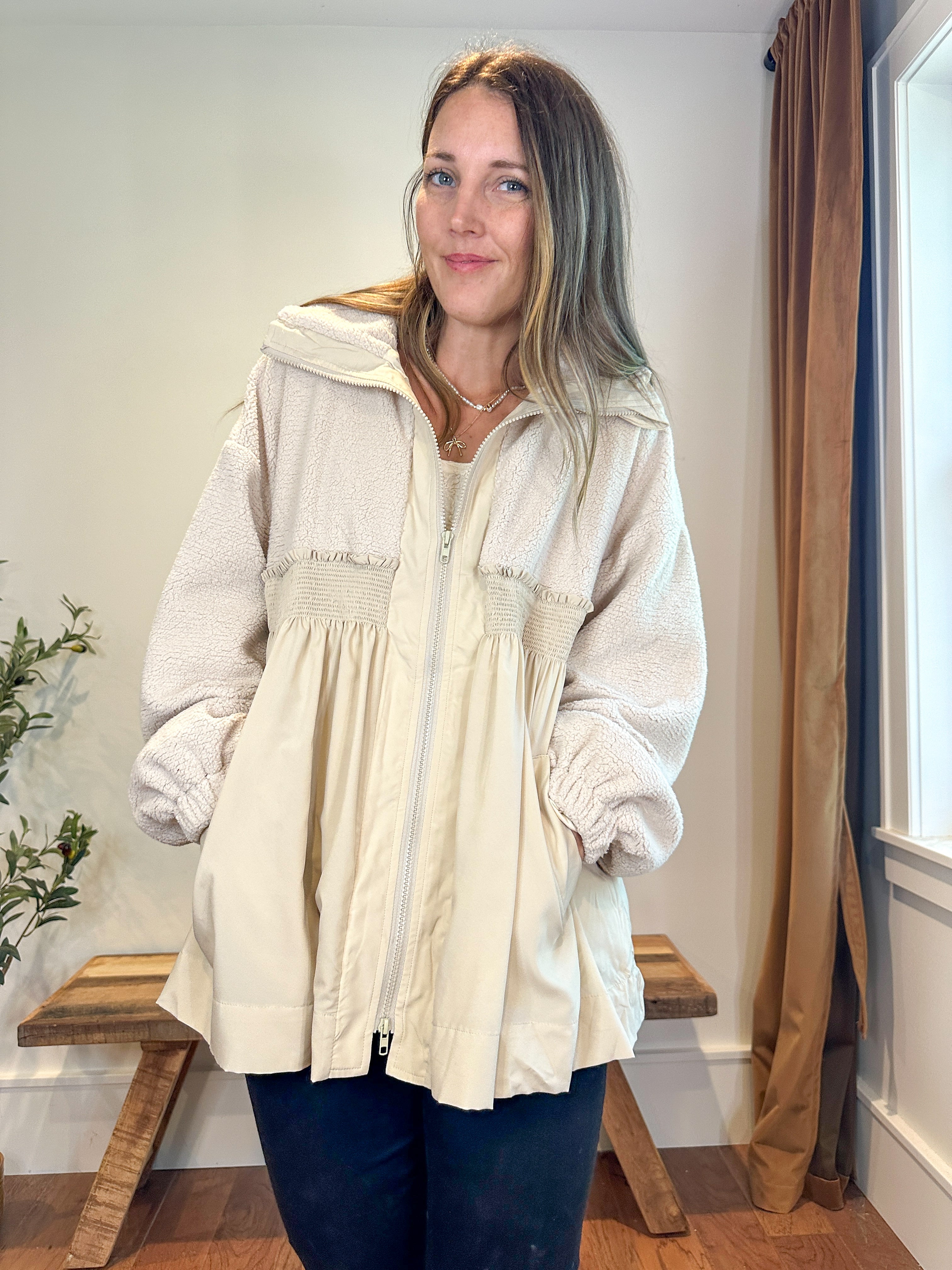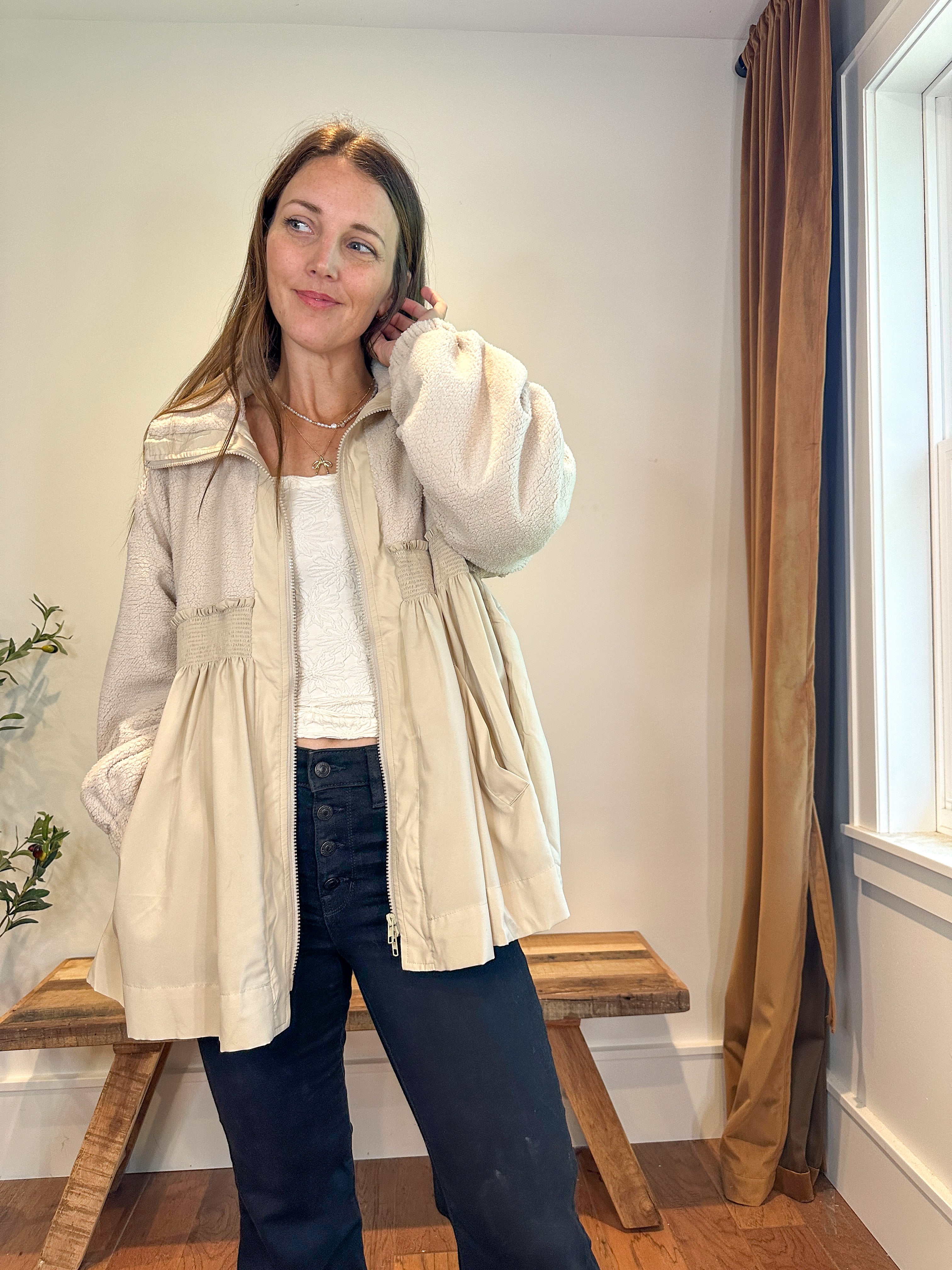 Wrap yourself in cozy charm with our new Fleece & Flare Jacket. Designed with a soft fleece finish, this jacket keeps you snug on cooler days while its babydoll silhouette adds a playful, feminine touch. The contrast detailing and zip-up front bring a modern edge, making it as stylish as it is comfortable. With its slightly flared fit, it layers beautifully over your everyday outfits—perfect for coffee runs, weekend strolls, or simply staying warm in style.