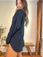 Maplewood Waffle Shacket - Black