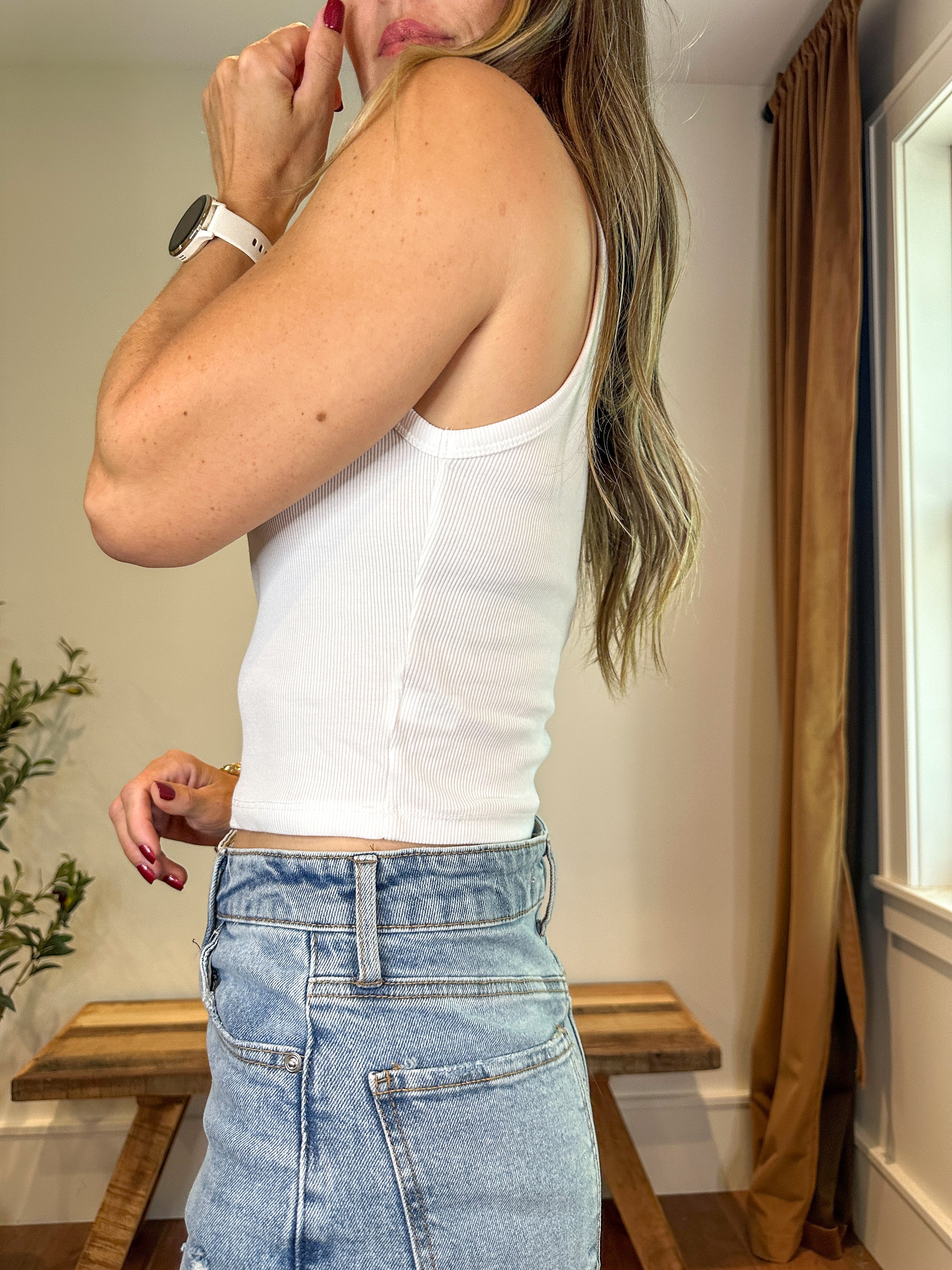 Effortless and versatile, the Neutral Ease Rib Tank is a must-have staple in every wardrobe. Made from a soft cotton-spandex blend, this sleeveless rib-knit top features a classic round neck and a flattering fitted silhouette. Available in black, grey, and ivory, it’s perfect for layering under jackets, cardigans, or wearing solo, offering comfort, stretch, and timeless style.