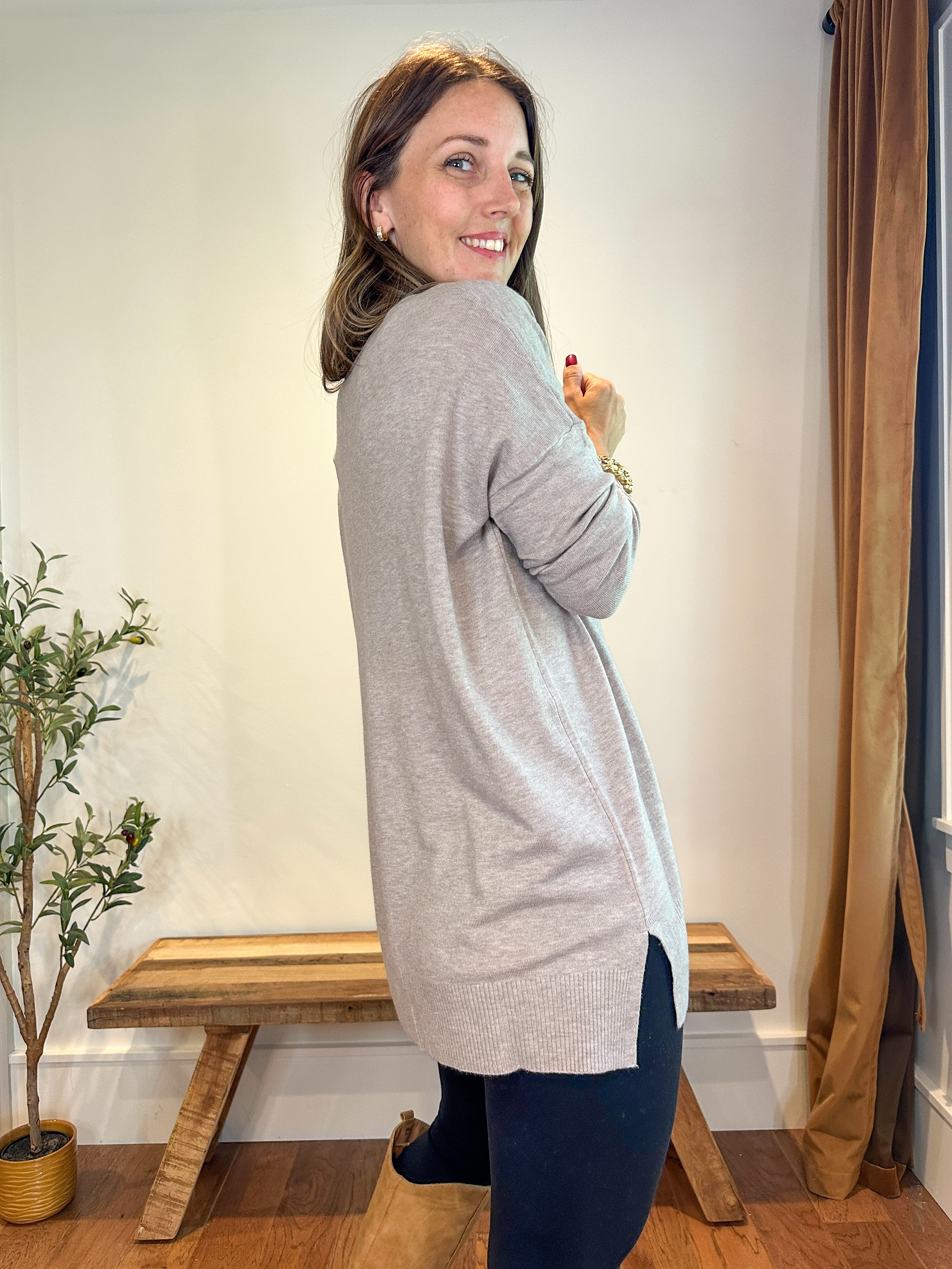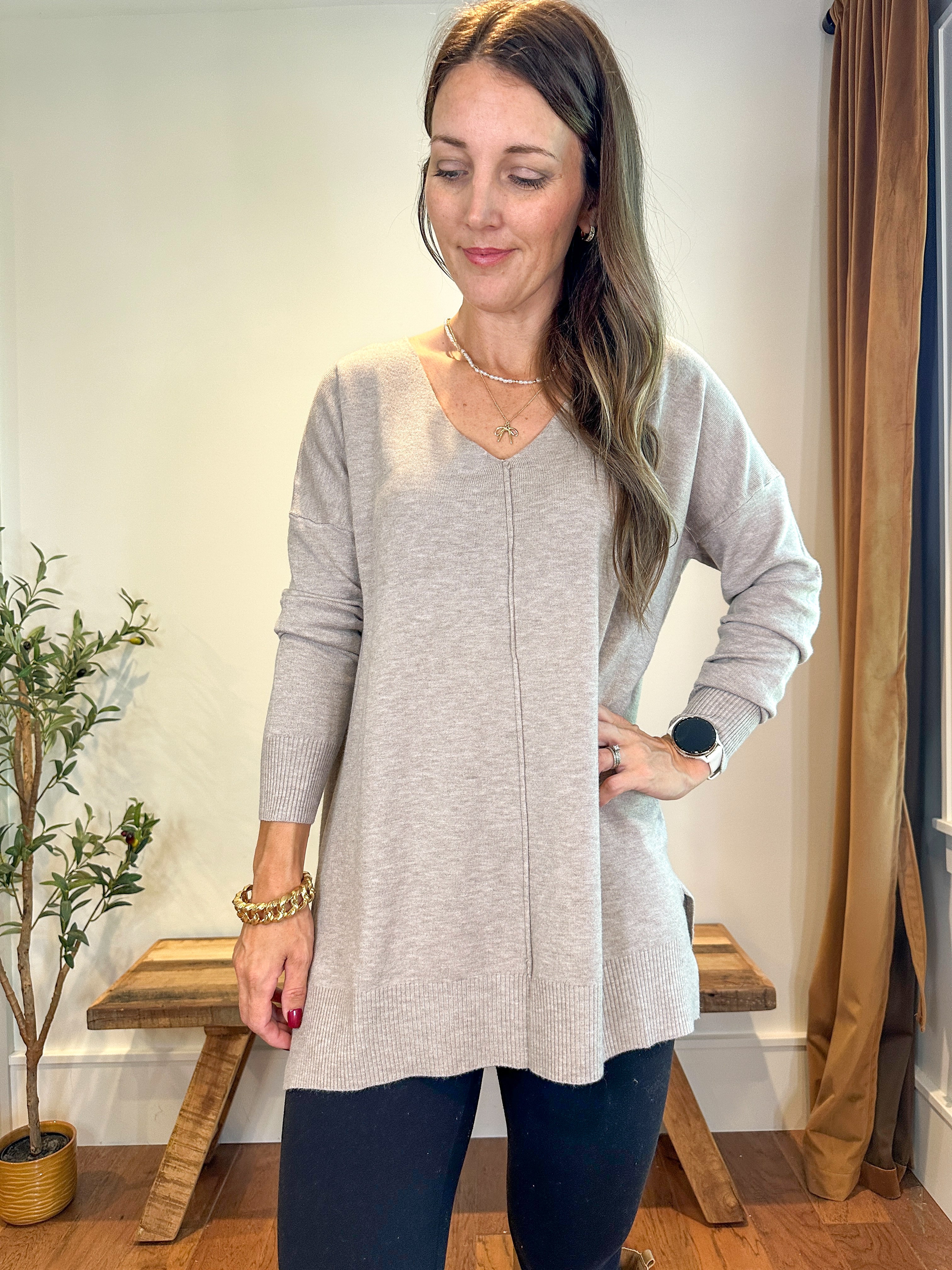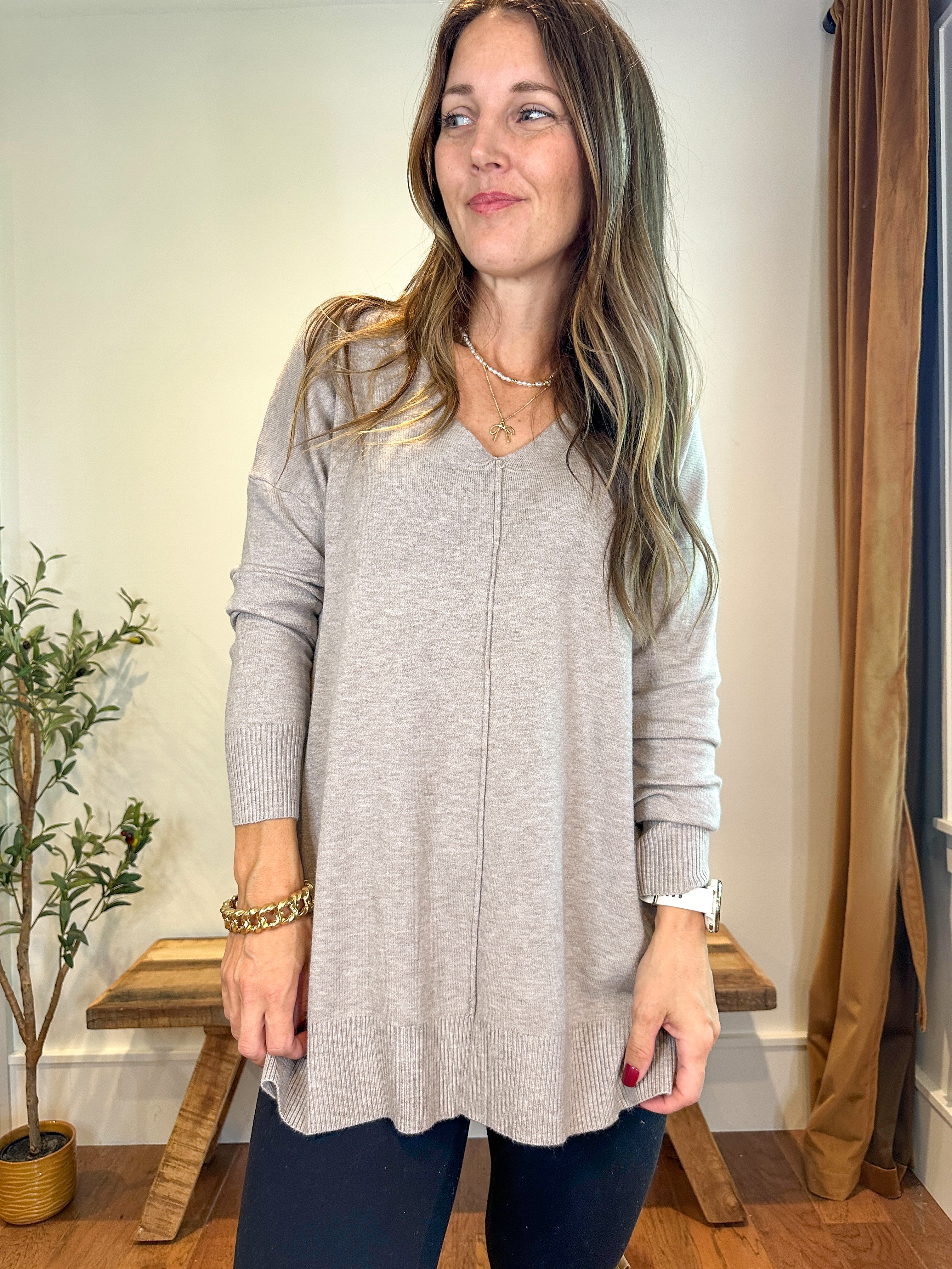 Cozy up in style with the Warm Whispers Sweater. Crafted from soft, lightweight viscose, this relaxed-fit sweater features a subtle front seam for a modern, understated detail. Ribbed hems and cuffs add structure while keeping the look effortlessly casual. Perfect for layering over jeans or skirts, it’s a versatile piece for everyday wear with a polished, cozy vibe.